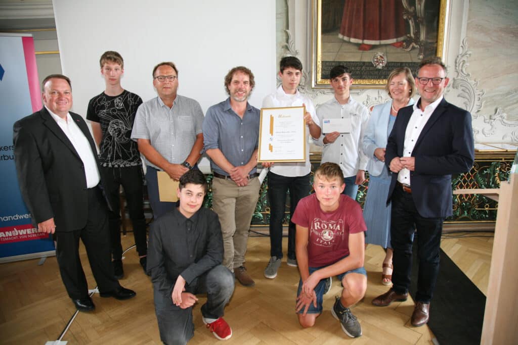 Bei einer festlichen Preisverleihung im Kurfürstlichen Palais Trier wurde der Technik-und-Naturwissenschaftskurs der Klasse 9 von Stefan Schwenkmezger für seinen Beitrag zum Schülerwettbewerb der Kreishandwerkerschaft Trier-Saarburg geehrt.